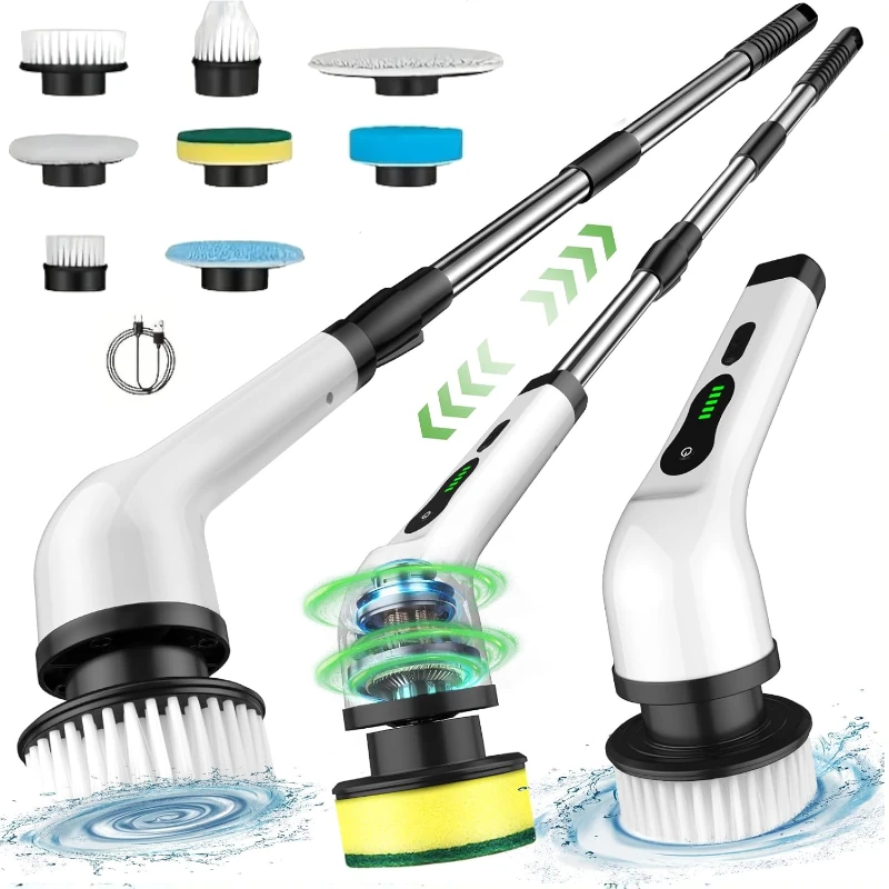 Cepillo de Limpieza Eléctrico 8 en 1 Recargable por USB, mango largo para cocina, baño, vidrios, pisos y más