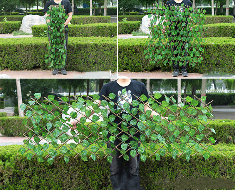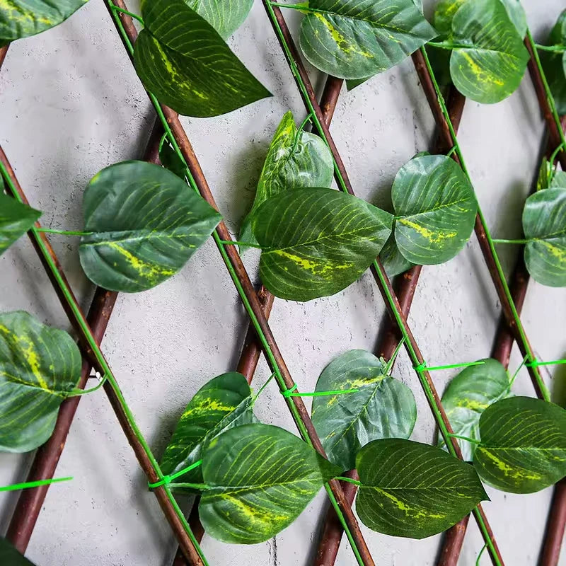 - Puedes utilizar el enrejado de hiedra artificial expandible horizontal o verticalmente, se mezcla bellamente con el paisaje natural, oculta áreas no deseadas.