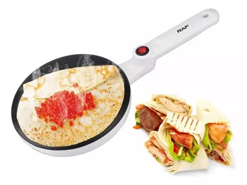 "Prepara las mejores crepas con nuestra Crepera Eléctrica. Fácil de usar con su botón de encendido y apagado, se calienta en solo 2 minutos y su superficie antiadherente permite una fácil limpieza. Obtén crepas perfectas en minutos con nuestra crepera."
